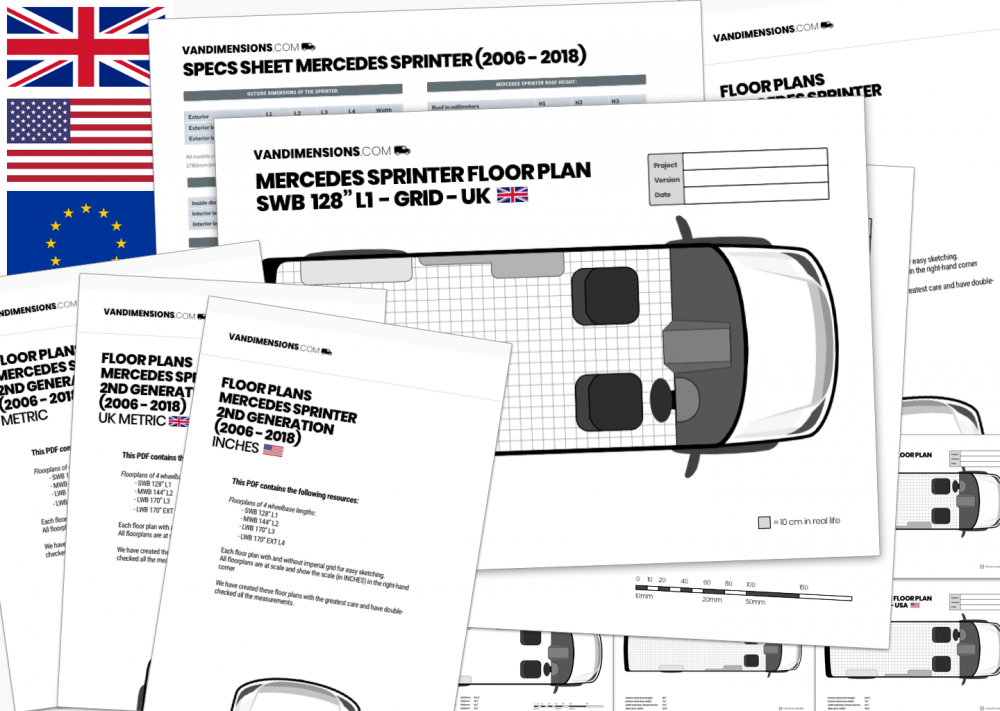 I'm really proud of it, it's a really great resource. When I started my van conversion, I wish I had these kind of floor plans. I couldn't find them, and it took me A LONG TIME to tweak and get all measurements right - like the distance between the wheel arches. Every time, I had to start over with my layout, since it was now off by centimeters. It's a pain to get everything measured accurately. I made them so that you don't have to. With these floor plans, you will get instant access to accurate and to-scale floor plans of all Sprinter lengths.